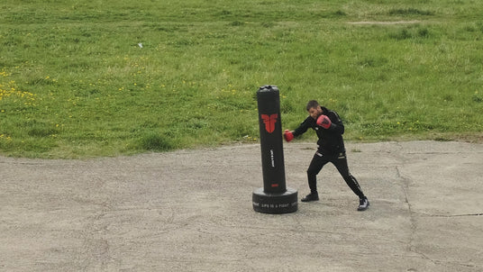 Die Hauptfunktion besteht darin, ihn als freistehenden Boxsack zu verwenden. Da sich das meiste Gewicht unten befindet, gibt Ihnen der Boxsack nach Schlägen oder Tritten ein großartiges Feedback. Auch wenn Sie stark schlagen oder treten und den Boxsack ablegen, können Sie ihn mit nur einem Finger wieder in die aufrechte Position bringen.