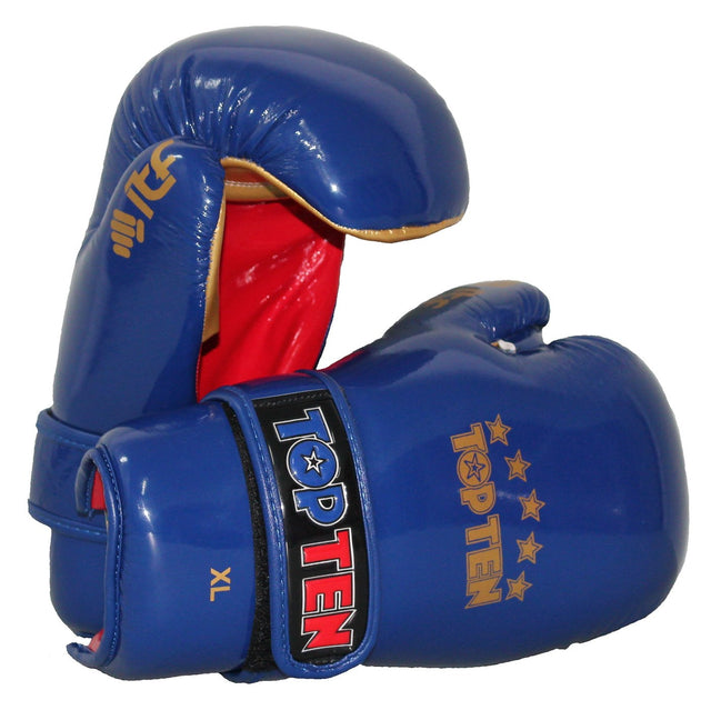 Les gants ouverts Top Ten sont spécialement développés pour le taekwondo ITF . Un gant très léger avec un rembourrage préformé.