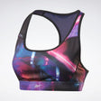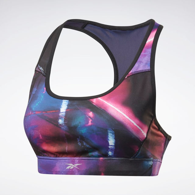 Ce soutien-gorge à impact moyen offre maintien et confort pour les courses courtes ou longues. Il est fabriqué dans un tissu anti-transpiration et rembourré pour plus de couverture et de galbe. L'imprimé intégral s'inspire des rues mouillées et des enseignes lumineuses des courses nocturnes.
